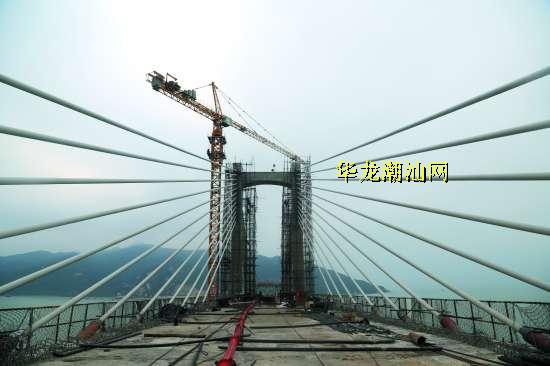 本报讯(记者 蔡晓丹) 记者昨从中交一航局南澳大桥SG-03合同段项目部了解到,南澳大桥东主塔昨天进行最后一对斜拉索的挂索施工,西主塔的斜拉索也将在五一节前后完成挂索工作,届时南澳大桥主桥48根斜拉索全部完成,将形成如“竖琴”一般的斜拉塔。