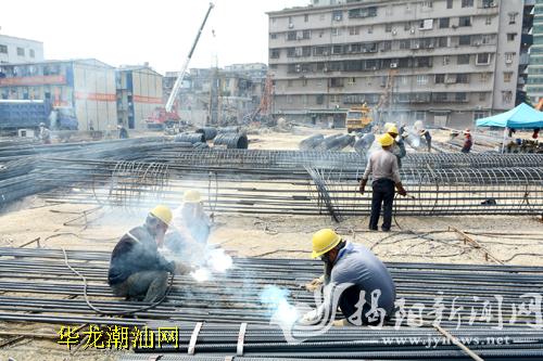 市人民医院门急诊住院综合大楼建设工地上,工人们正在加紧施工。郑楚藩 摄