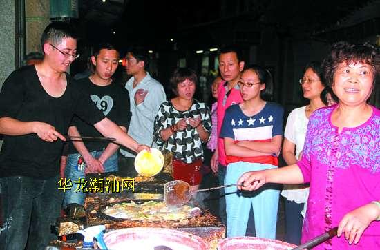 本报讯 记者黄鸿华摄影报道:央视《舌尖上的中国》这部介绍我国各地美食的纪录片,一经播出便受到全国观众热捧,在第一季中,播出了汕头的紫菜、糖葱薄饼、熏鸭等美食,第二季也于本月正式开播。在25日播出的《舌尖上的中国2》第二集当中,汕头的西天巷蚝烙以及澄海区莲下镇的银屏蚝烙现身其中,恰逢周末,城掀起一阵“蚝烙”热潮,多家知名蚝烙店都迎来大批尝鲜的食客,其中不少还是专程从外地前来。
