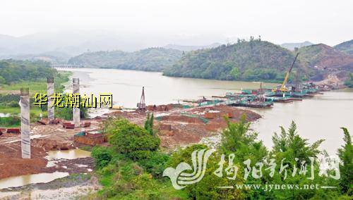 揭西大溪镇榕江大桥工程建设正在加紧推进中