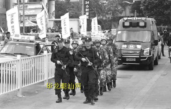 为做好“五一”节日期间全市安全保卫工作,加强公共复杂场所的治安巡逻防控工作力度,5月2日至7日,我市特警、武警、边防联合上路武装巡逻,预防、震慑和打击违法犯罪和各种暴力恐怖活动。 本报记者 林子海 林鹏 摄影报道