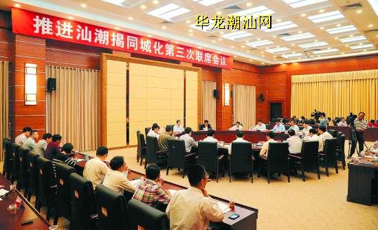 本报讯 (记者陈静莹)昨天下午,推进汕潮揭同城化第三次联席会议在揭阳市召开。会议总结交流汕潮揭同城化工作成果,研究部署下一步合作事项,审议《2014年推进汕潮揭同城化发展建设粤东城市群工作计划》,共商汕潮揭同城化发展大计。
