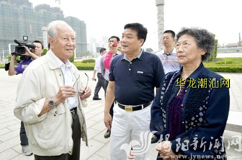 4月29日,在吴平河的陪同下,黄旭华院士一行到揭东人民广场参观考察。涂英鹏 摄