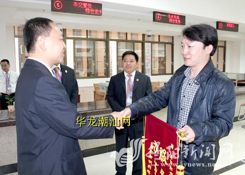 近日,揭阳市明利电力发展有限公司专门派代表到市政务服务中心,向市交管处驻市政务服务中心办事窗口赠送绣有“服务热情,办事高效”的锦旗,对市交管处办事窗口仅用3天时间(比法定时间30天缩短了27天)就为他们办结了道路普通货物运输经营许可表示衷心感谢,并对市政务服务中心整体优质高效的便民服务工作给予肯定和赞扬。