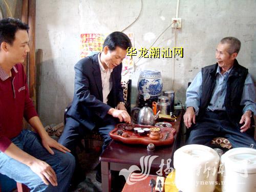 72岁老人林三葵住在社区东边的老寨里,林淡辉一踏入林三葵家中,就紧紧握住老人的手,把一个装着慰问金的信封塞到老人手中。“前几天你刚让社区的民政干部给我送来慰问金,现在又自己带着慰问金来看我,这些年来多亏有你的照顾,我这把老骨头才能安度晚年!”林三葵激动地说。“三葵叔,不用客气,这是我应该做的。”说着,林淡辉拿起功夫茶具,为林三葵泡起了功夫茶,与他闲话家常……