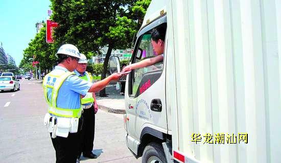 我市公安交警部门在做好重点路口路段指挥疏导的同时,加大路查路检力度,依法查处涉牌涉证交通违法行为,确保城乡道路交通安全和畅通。图为交警龙湖大队执勤民警近日在长平路对一辆小型厢式货车的驾驶人证件进行检查。本报记者 王开颖 摄