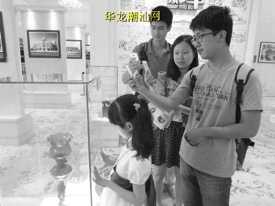 本报讯(记者 郭丹 摄影报道)用手机扫一扫,只需几秒钟,有关文物的详细信息随即显示在手机上,这是我市博物馆首次为文物推出的二维码“自助导览”服务。昨天,汕头开埠文化陈列馆运行集免费WIFI环境、官方微信公众号、移动微官网三位一体的微信系统,启动“指尖上的陈列馆”。