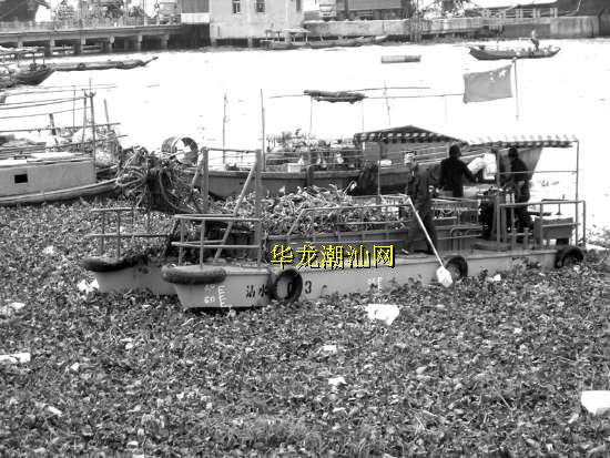 本报讯(记者 林彦恂 摄影报道)近期,市环卫局属下水上保洁队以水浮莲最为集中的海滨路大洋造船厂铁吊桥下为重点,对汕头内海湾北侧水浮莲进行打捞清理,仅5月5日至16日,共清理打捞水浮莲40多吨。