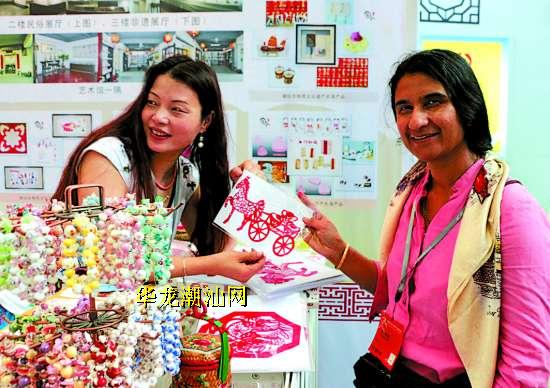 “我们公司这是首次参展文博会,五天的产品销售总额近8万,有意向的客户达十多家,这对于我们继续开展潮汕文化创意开发是很大的鼓舞。”王秀君高兴地说道。博今潮文化工艺有限公司成立于2012年,是一家处于起步期的公司,主要从事非物质文化遗产与传统特色文化的整合开发、旅游纪念品开发等业务。博今公司此次带去参展的产品主要是融入了潮汕“非遗”等传统民间文化的工艺品以及日常用品,如侨批、陶瓷侨批摆件、侨批书签、传统竹编灯笼、陶瓷@印、手机袋、鼠标垫、汽车用品、手机挂件、笔记本、T恤衫、手机外壳等。新的设计让这些“老物件”在文博会上焕发了新生机,引来人们驻足关注,连“老外”都被吸引了过来。