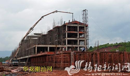 揭西京明生态村项目总占地面积约2900亩,计划投资约20亿元。项目建成后,将与国家级4A景区京明温泉度假村以及京明体育中心、“岭东第一瀑”黄满寨瀑布群旅游区紧密相连,共同构建一个集旅游、休闲、商业、居住于一体的大型旅游度假及高档生活圈。工程自去年冬开工以来,已投入资金1亿元,完成会所及配套工程,商业街7幢5层楼房已完成2幢,目前工程建设正抓紧进行。图为建设中的商业街一角。特约记者 李维照 摄