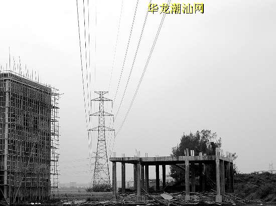 在潮阳区一个村庄,就在220千伏高压线经过的铁塔下,一栋房子正处于施工状态(如右图)。这是供电巡查人员用照片记录下的真实情况。