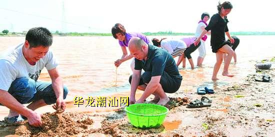 近日,连续近月的阴雨天终于放晴,市民相约到韩江出海口淘河蚬。几个大人在江边尽情地嬉戏玩耍,好像回到童年时代。