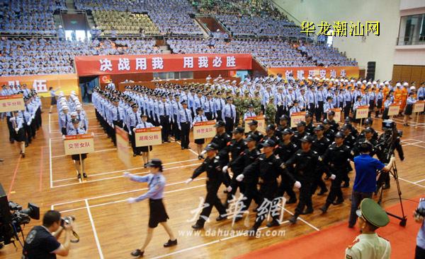 昨天上午,市公安局在潮汕体育馆举行了2014年全市公安机关警体训练考核,来自南澳分局、交警等13支从预赛中脱颖而出的参赛队参加了以队列动作为主要内容的考核。严整规范的警容、整齐有序的队列、刚劲有力的动作、高亢有力的口号,充分展现了我市公安民警积极向上、顽强拼搏的良好形象。 本报记者 林子海 林鹏 摄影报道