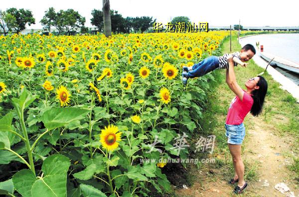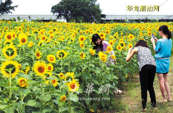 昨天上午阳光灿烂,记者来到位于月浦街道沟南社区的向日葵海。车停在沟南许地巷子口,远远就看到一片金黄葵海,甚为壮观。葵海旁边的池塘里,有一艘龙舟被绳子拴在岸边。非节假日,仍有不少市民慕名前往游览观赏。家住庵埠的三名女市民结伴,专程到沟南观赏向日葵。她们“全副武装”,穿长衣长裤,还随身带着防蚊液,只为了能与向日葵“亲密”合影。有一位女摄影爱好者,独自一人拍金黄葵海。为了拍到葵海壮观的场景,这位女摄影者还向工地借了一张木梯,攀到木梯上拍摄成片葵海。