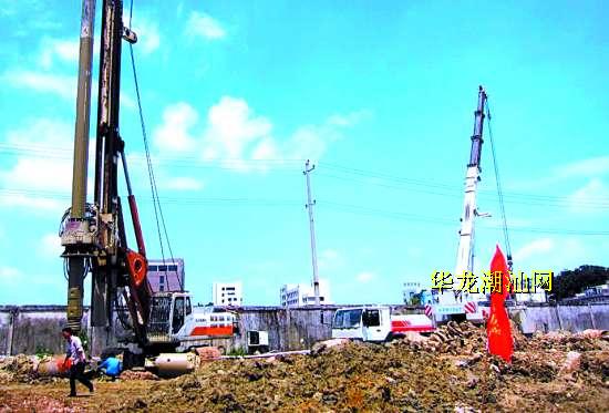 室外气温已逾30摄氏度,天空一会烈日炎炎一会暴雨倾盆,对工地上的建筑工人来说都是严峻考验。5月29日上午,记者来到位于潮南区峡山街道峡山居委尖角洋的巴比伦商贸城项目工地,看到工人们正在烈日下挥汗劳作,两台大型旋挖机不停地旋转挖钻。“项目今年3月中旬开始打工程桩,目前已完成了约80%的工程量。在土方专项方案通过专家论证后,将立即着手进行难度较高的两层地下室施工,力争今年底完成项目主体工程。”开发商汕头市金弘泰房地产开发有限公司的工程部负责人丁先生向记者介绍。