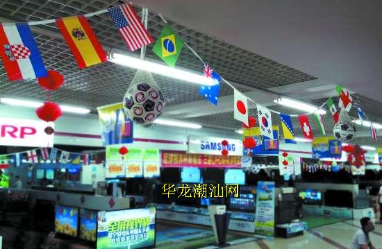 观看世界杯离不开荧屏,所以销售电视机的商家自然不会放过这么一个绝妙商机。在市区长平路、金砂东路等商场超市的电视售卖区,各品牌的电视厂家都已经紧锣密鼓展开了世界杯电视节,提前“开球”,专柜售卖区悬挂着各国旗帜以及足球标识,营造世界杯氛围。而“看高清世界杯”自然成了电视卖场的火热促销口号,色彩明亮、最新款的大屏幕液晶电视确实吸引了不少顾客尤其是球迷们的目光。
