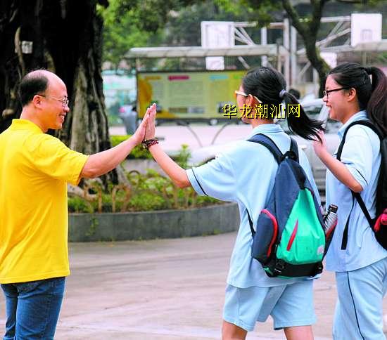 今天上午7点半,记者来到了市华侨中学考场,在校门口看到了一幕幕充满温馨的送考场面:不少家长在送考生到达之后,都非常关切地帮自己的孩子检查物品,临走时也不忘送上一句鼓励的话——“加油!”一位父亲给自己的女儿竖起了大拇指,女儿也高兴地回敬了一个拥抱;而另一位父亲则轻轻地抱着女儿的头,在她耳边留下激励的话语;有的家长则掏出手机,把孩子步入考场的背影拍了下来留作纪念;一位男生在下车之后,还不忘对着后视镜整理了一下发型,大有一种“以最帅的姿态迎接考试”的风范;站在校门口迎接的老师和每一个到来的学生们热情击掌、喊话……“哎呀,水杯忘了带了!”一位老奶奶拿着一个装满水的玻璃杯,一脸焦急地走了过来。站在校门口的老师看到了这一幕,上前询问了老奶奶孙子的姓名和班级,然后让另一位同学帮忙把水杯带进去,老奶奶心里悬着的石头才终于放了下来。