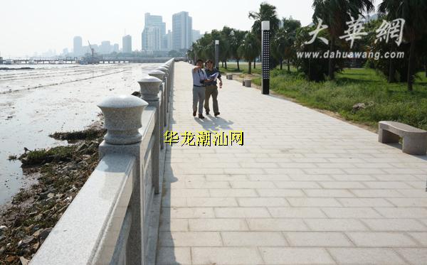 据了解,去年底,由于水利部门实施汕头大围防汛工程,将华侨公园的临海区域用铁板围起,阻挡了视线,海景也遗憾地与大家暂别。在刚完工的华侨公园段堤围,记者看到,长长的海堤沿线铺设了6米宽的石板路面,整齐的栏杆上雕刻了主题以“梅、兰、竹、菊”画和“海纳百川、厚道载物、自强不息、业精于勤”等体现潮汕精神文化的文字。