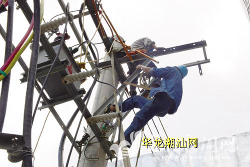 电力急修人员冒着高温天气加班加点作业。林树希 摄