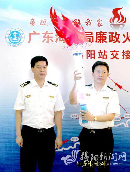 据了解,活动以“廉政火炬驻我家,平安人生你我他”为主题,从4月份开始,历时一年,在广东海事局局属24个单位开展,在粤东、粤西两条线同时进行。作为东线传递的第4站,火炬将在我市驻留1个月,分别在揭阳海事局机关及南河、揭东、惠来3个海事处之间传递。