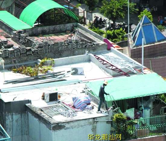 记者在不同小区不同居民楼进行了相同的测试,所得到的结果均是顶楼住宅温度远高于低层住宅。如此高温折磨,让顶楼居民感到很遭罪。为此,他们也可谓使尽了招数。家住丹阳庄的周先生就是顶楼居民,几天前他刚给天台加装了隔热遮阳棚。周先生告诉记者,在此之前,天台已铺设隔热砖,不过感觉隔热效果不太明显,每到中午,整间房子很闷热,连风扇吹出的风都是热的,所以换上遮阳棚,隔热性能好些。
