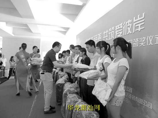 昨天上午,汕头市广播电视台与汕头市公益基金会在高新区超声科技大厦举办“激情寄慈善 共筑爱彼岸”世界杯特别节目颁奖仪式暨慈善助学公益活动。活动现场,卜蜂莲花等8家单位和个人为13名即将进入大学校园的贫困学子提供每人5000元助学金,使他们得到真正的帮助,圆他们的大学梦。图为活动现场。