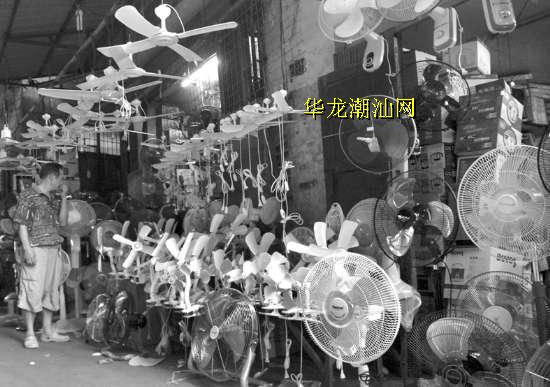 街边商铺摆起了“风扇阵”。