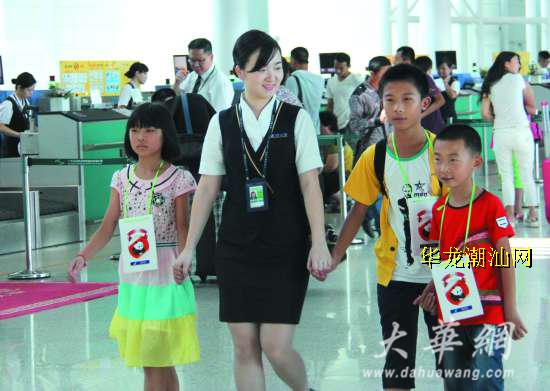 本报讯(记者 黄泽春 摄影报道) 最近一段时间以来,潮汕机场出现了一个平时较为少见的现象:这里接到的乘机出行“单飞儿童”明显增多。南航今年针对5至12岁无陪儿童群体,量身定制的“木棉童飞”无陪儿童全程“可视化”新服务更是倍受欢迎,最近半个余月,到潮汕机场搭乘汕航航班出港“单飞”的儿童更是多达逾100名。