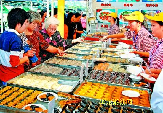 1988年9月20日,首届潮汕美食节在龙湖宾馆开幕。从1999年开始,潮汕美食节每年都举办一次,迄今为止,美食节举办了19届。每当潮汕美食节举办的时候,像飘香小吃店、老妈宫粽球店、西天巷蚝烙店等比较有名的潮汕小吃老字号都会齐齐亮相,一些星级酒店如帝豪大酒店、金海湾大酒店、国际大酒店、龙湖宾馆以及建业酒家、成兴鱼舫、皇城酒楼等高档酒肆也会放下架子,挑选一些小吃类的食物到美食广场设摊摆点。