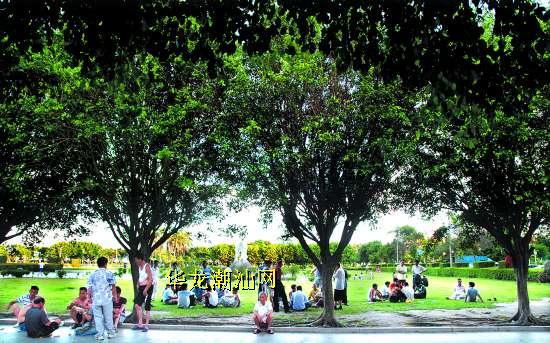 水壶、小扇子,是市民黄昏走出家门到广场纳凉的必备。渴了,来上几口解渴,热了,轻轻挥扇,闷热顿时消失。广场、长廊上婆娑的榕树下、草坪上,都聚集了不少乘凉的老人小孩,站着的、坐着的,摇着纸扇、说着家事,或者打太极、逗孙子玩,如此惬意的傍晚就是一种享受。