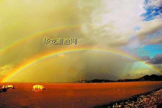 17级超强台风“威马逊”7月18日登陆琼粤桂三省,给汕头带来暴雨,缓解闷热。图为7月19日下午4时多,在市区石南滨路海边,美丽的双彩虹飞跨汕头海湾两岸,十分壮观。 王海鹏 摄