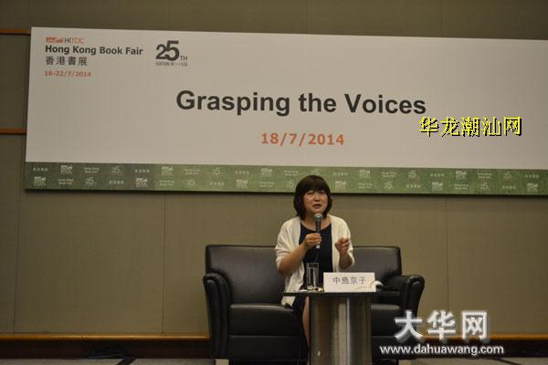 7月18日,日本著名作家中岛京子以“Grasping the voices”为题,与参加香港书展的听众分享了她的创作心路历程。中岛京子著有《东京小屋的回忆》,该书获第143届直木奖。
