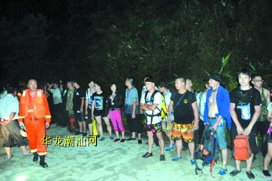 记者昨天从揭西县公安消防中队了解到,前晚9时左右,消防中队接到一名客车司机报警,称一个来自汕头的旅游团在约定时间内,没有在约定的大北山山顶汇合。消防中队接报后,立即派出2部消防车和15名消防官兵,连同当地政府及派出所的救援人员合共70人前往搜救。由于大北山森林公园面积大,山脉多,再加上当时下着暴雨,搜寻难度较大,救援人员抵达后分成两队,一队从山顶往下搜寻,另一队从山下往上搜寻。经过近3小时搜索,救援人员最终在大北山山腰发现24名被困者。