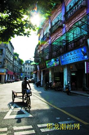傍晚时分,老市区外马西路尽头的骑楼下,数名赤膊大汉正顶着酷热将一箱箱皮鞋往货车上搬。货车旁,大大小小的鞋店鳞次栉比,有的批发品牌皮鞋,有的售卖廉价拖鞋,款式之多让人目不暇接。这里是小公园片区的入口之一,也是汕头人无人不知的“鞋岛”。市民陈女士在此处经营皮鞋批发多年,见证小公园的兴衰,用她的话说,“鞋岛”算是当前小公园最有人气的片区。