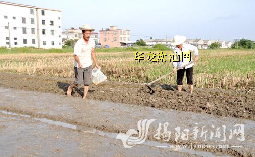 今年早稻收割已基本完成,目前正迎来晚稻播种季节,我市各地农户纷纷抢抓时机备耕,期望晚稻再获丰收。图为揭东区锡场镇东仓村农民正在进行晚造秧田整理和播种。 林洁松 摄
