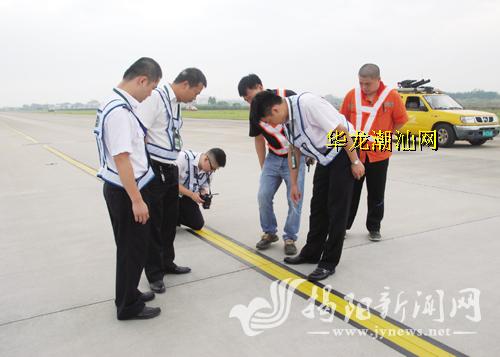 为不影响当天航班飞行,此次徒步检查从凌晨5时50分开始,70名技术人员分成4个组,分别从跑道两端及滑行道入口向各汇集点行进,对长2800米、宽45米的跑道、同等长度的滑行道以及7条联络道进行地毯式检查,检查面积达40万平方米。经过1小时全面细致的检查,得出的结论是揭阳潮汕机场跑道、滑行道总体情况良好,处在安全、适航状态,滑行道个别地方有轻微受损,机场方面将及时修复,不影响飞机安全起降。