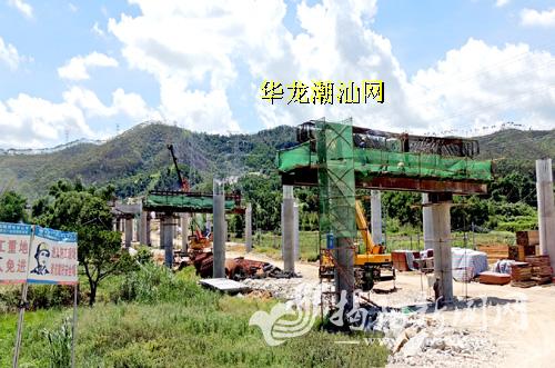 汕湛高速揭西段龙潭省道S335跨线桥主跨35米,分左右两幅设置,每幅桥面宽16.5米,采用膺架法现浇施工,该工程自去年开工以来,已完成总工程量的近一半。 特约记者 李维照 摄