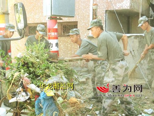 昨天,解放军某部驻捷胜海训官兵在捷胜镇开展卫生环境大整治活动。官兵们经过一整天的辛勤劳动,使整个捷胜镇内的公共活动场所及大街小巷变得干净整洁。