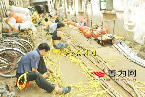 日前,城区新港街道红卫渔网加工厂的工人正在赶织渔网,以满足开渔捕捞需要。