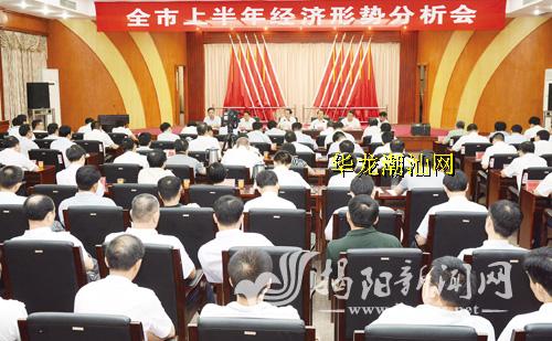 30日上午,市委、市政府高规格召开全市上半年经济形势分析会,传达贯彻落实省委书记胡春华视察粤东特别是揭阳时的重要指示精神和省进一步促进粤东西北地区振兴发展工作会议精神,回顾总结上半年我市经济工作情况,研究部署下半年工作。市委书记、市人大常委会主任陈绿平作重要讲话,强调全市各地各部门要坚定信心,咬定目标,突出重点,真抓实干,确保完成全年各项目标任务,争当粤东西北地区加快发展排头兵。