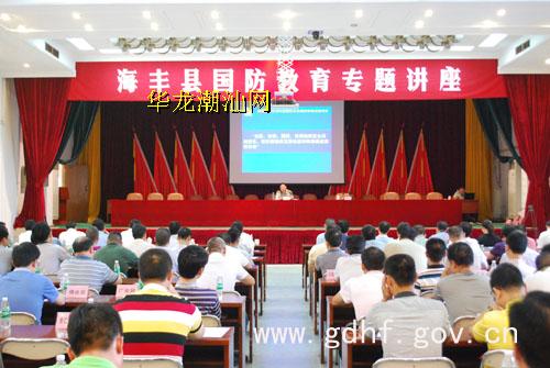 7月30日,我县国防教育专题讲座在县迎宾楼会议厅举行。特邀汕尾军分区政治部主任亓安民大校对《国际安全形势与我国安全环境的新特点新变化》进行讲解。深汕特别合作区党工委书记、县委书记沈木荣,县长陈德忠,县政协主席冯月琴,县委副书记林建隆,县人大常委会常务副主任姚英谋等县领导聆听讲座。讲座由县委常委、武装部长郑秋汉主持。