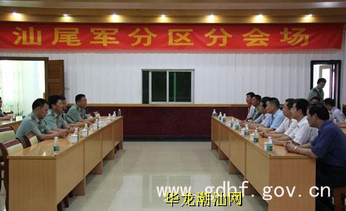 深汕特别合作区党工委书记、县委书记沈木荣(右)到汕尾军分区慰问驻地官兵