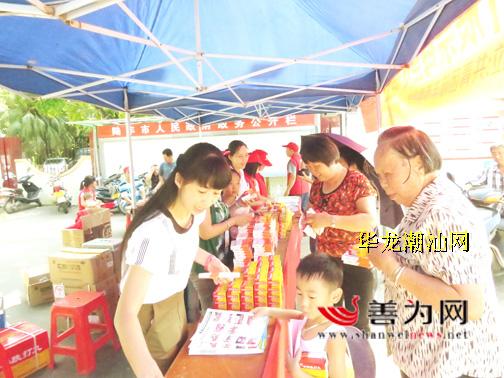 7月30日,陆丰市团委组织志愿者在该市文化中心门前开展禁毒宣传活动,向群众派发禁毒手册、禁毒倡议书,讲解毒品的危害,提醒群众提高防毒意识及自我保护能力。图为活动现场。