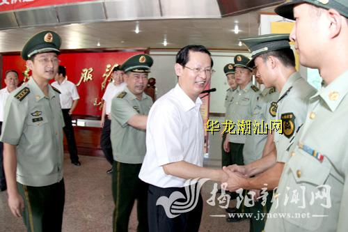 驻汕水警区司令员赵卫东、政委宋兰广等对我市大力支持国防和军队建设表示感谢,对揭阳经济社会发展所取得的显著成绩给予高度赞誉,认为揭阳发展前景广阔、后劲十足。表示今后在加强部队自身建设的同时,将义不容辞,始终如一地支持揭阳各项事业的发展。
