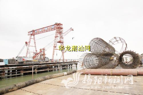 目前,潮惠高速榕江特大桥已基本完成水上栈桥平台搭设,钢护筒下放32根,桩基础施工2根,砼方量约1300立方米,施工建设加快推进。图为榕江特大桥工地。杨继斌 摄