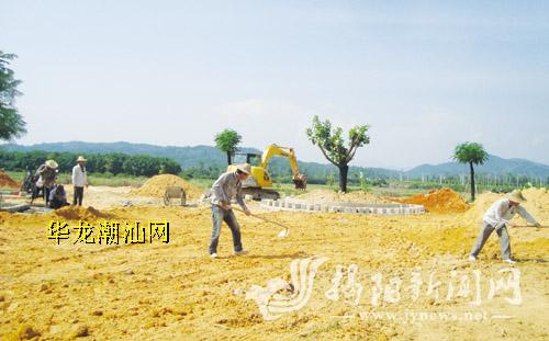 烈日下,大南山侨区桃园村小公园的建设现场依然热火朝天:施工人员有的手拿铁铲平整黄土,有的在栽种大叶紫薇、火焰木等花木,有的在树下垒砌石墩……