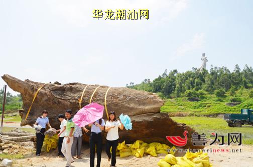 近日,陆丰妈祖文化园区惊现“千年水沉香樟木”:该香樟木重约18吨,树身长7.3米,树根头周长9米,生长及沉水期达数千年。古木由一林姓人士巨资购入,置此供市民观赏。各地游客纷至沓来,先睹为快。