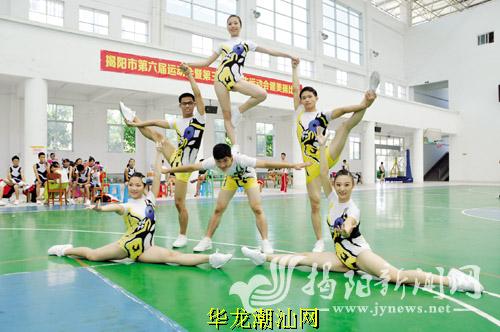 8月7日上午,市第六届运动会暨第三届中学生运动会健美操赛在揭东区第二中学举行,榕城区代表队以出色的表演夺得竞技六人操、竞技三人操及竞技双人操三项桂冠,列团体总分第一名。