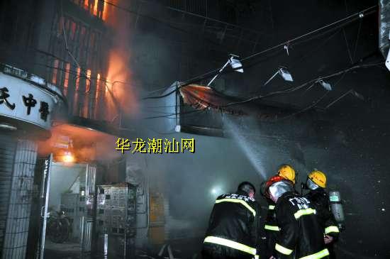 本报讯(记者 杨立轩 袁笙 摄影报道) 昨晚9时左右,市区梅园6栋住宅楼一铺面发生火情,浓烟迅速扩散并弥漫至长平路上。金平消防接报后,派出数十名消防官兵及多辆消防车到现场救火。截至记者10时30分离开现场时,暂未发现有人员伤亡。