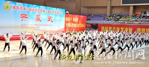在全省第十五届体育节和我市全民健身日活动拉开帷幕之际,8日上午,市第六届运动会暨第三届中学生运动会在揭阳念慈体育馆开幕。